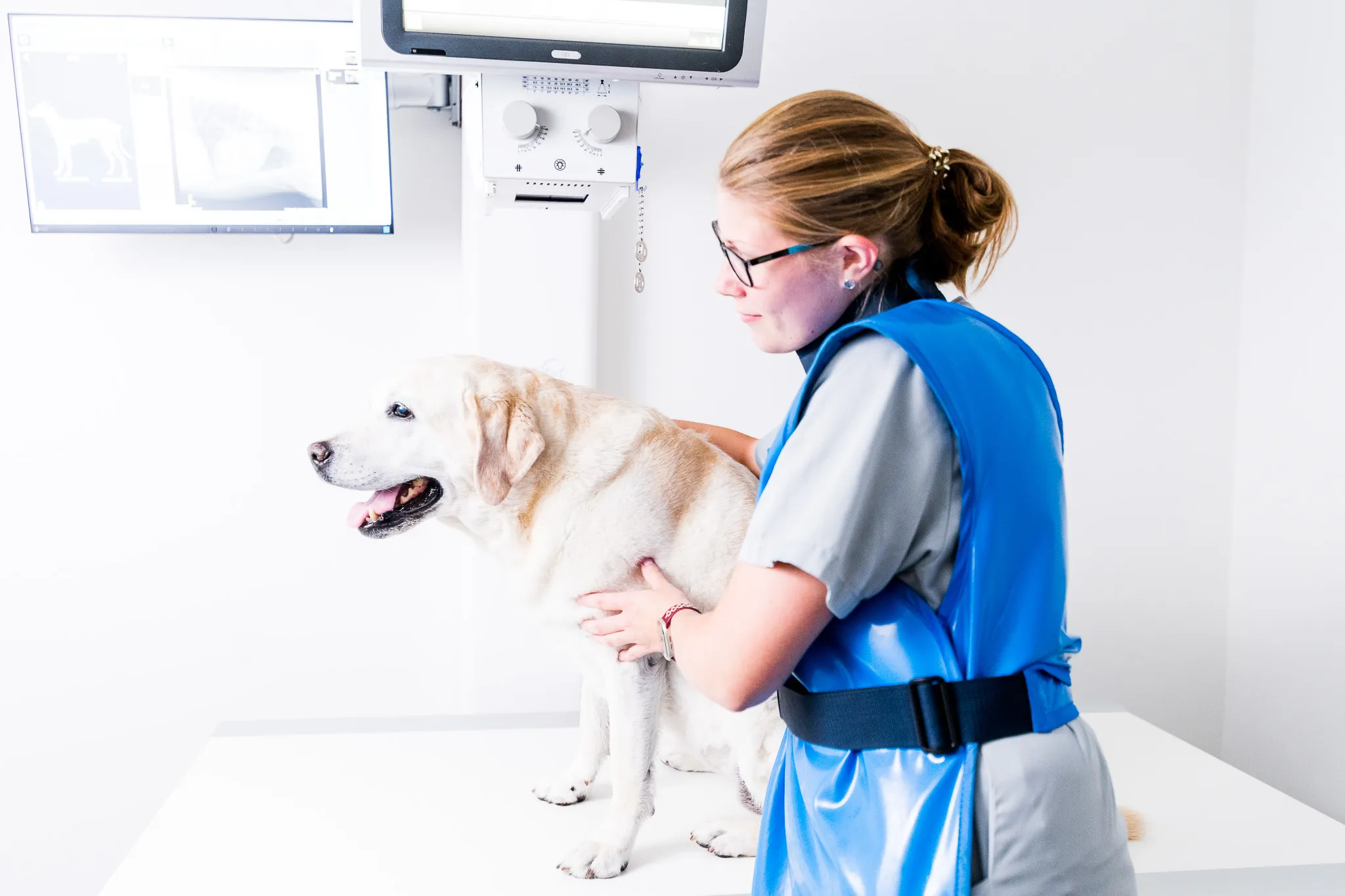 Das digitale Röntgengerät verfügt über eine integrierte Detektorplatte. Damit können wir Röntgenbilder in Echtzeit hinsichtlich der richtigen Lagerung und Bildqualität einordnen.