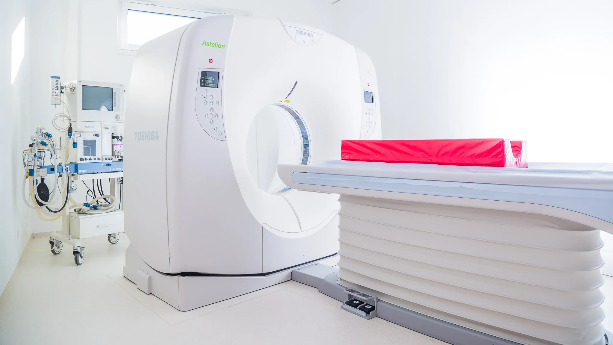 Der Astelion Advance Computertomographie-Scanner (CT) von Toshiba enthält einen 16 Zeilen Quantum Detektor. Mittels neuster Technologie AIDR 3D (Adaptive Iterative Dosisreduktion in 3D) ermöglicht das Gerät Untersuchungen mit ultrageringer Strahlendosis. Dadurch können wir eine zügige Untersuchung mit einer deutlich gesenkten Strahlenbelastung anbieten.