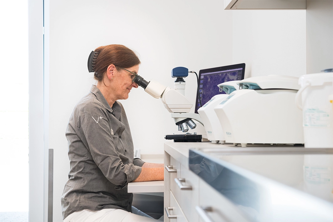 Wird eine Tumorerkrankung in Betracht gezogen wird dieser Verdacht zunächst abgeklärt. Bei positivem Befund wird im Anschluss die Art des Tumors bestimmt. Die Tumorart gibt maßgeblich das weitere Vorgehen und die Behandlungsmöglichkeiten vor. Zur Bestimmung entnehmen wir eine Gewebeprobe, in der Regel ist dies mittels Feinnadelaspiration möglich. Im Anschluss erfolgt die zytologische Untersuchung der entnommenen Zellen in unserem praxiseigenen Labor. Die Zytologie gibt Aufschluss darüber, ob es sich um eine Entzündung, einen gutartigen (z.B. Lipom) oder bösartigen Tumor (z.B. Lymphom, Mastzelltumor, Sarkom, Karzinom) handelt.